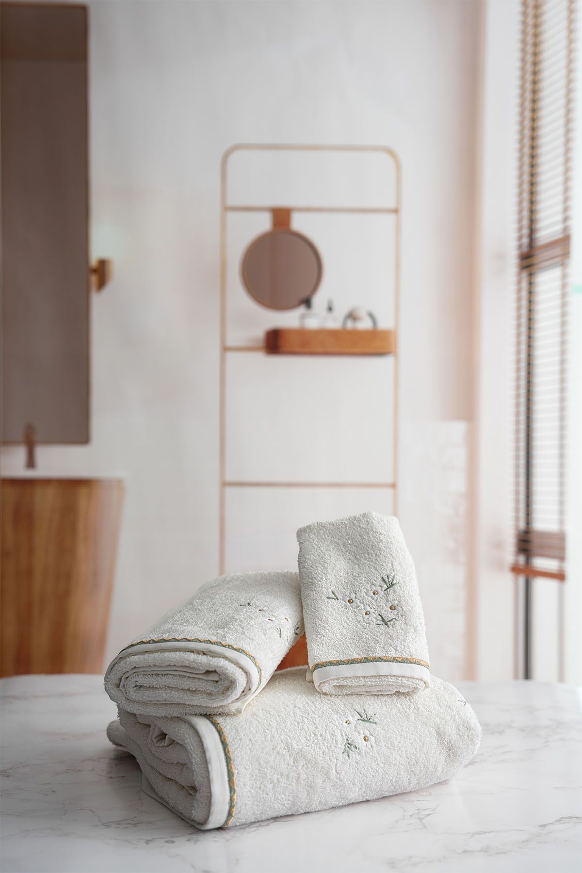 Bella Maison %100 Pamuk Floris Yüz Havlusu Krem (50x90 cm)