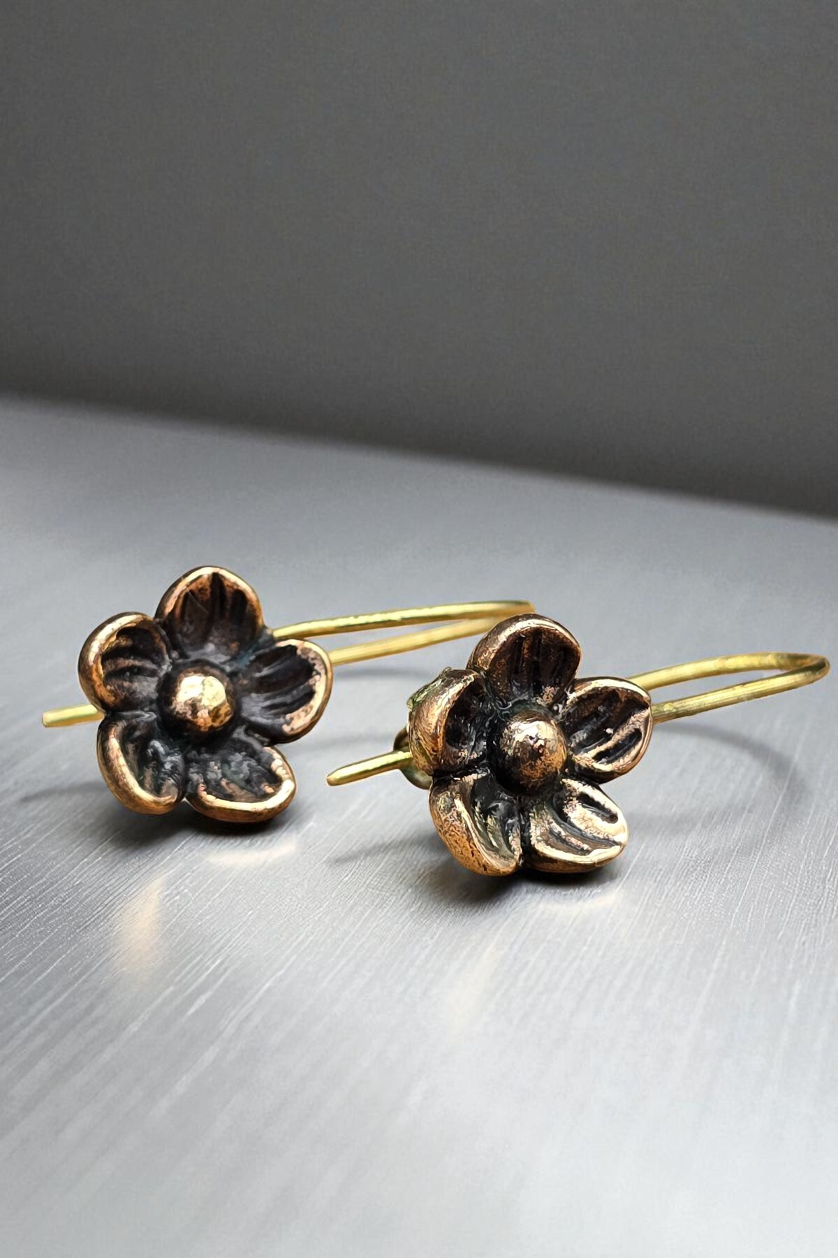 NBS Beautiful Naturel Stones Bakır Küpe Saf Gerçek Kaliteli Çiçek Modelli