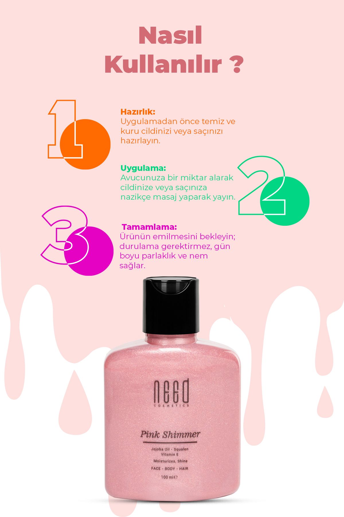 NEED COSMETİCS Pink Shimmer Işıltı Veren Saç Ve Vücut Yağı - 100 ml ürünü ucuz fiyat, hızlı kargo imkanı ile hemen sitemizden sipariş verin.