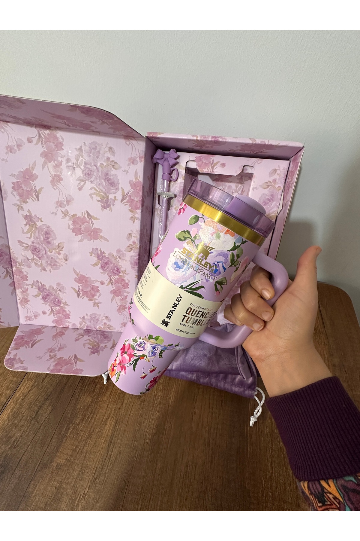 Neon Love Shack Fancy Pipetli çiçekli 1.18lt kutulu termos