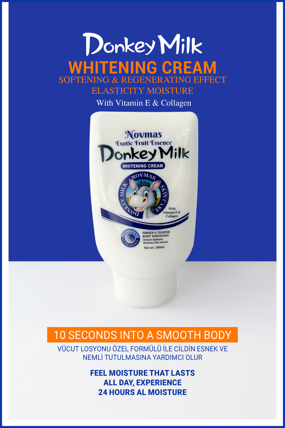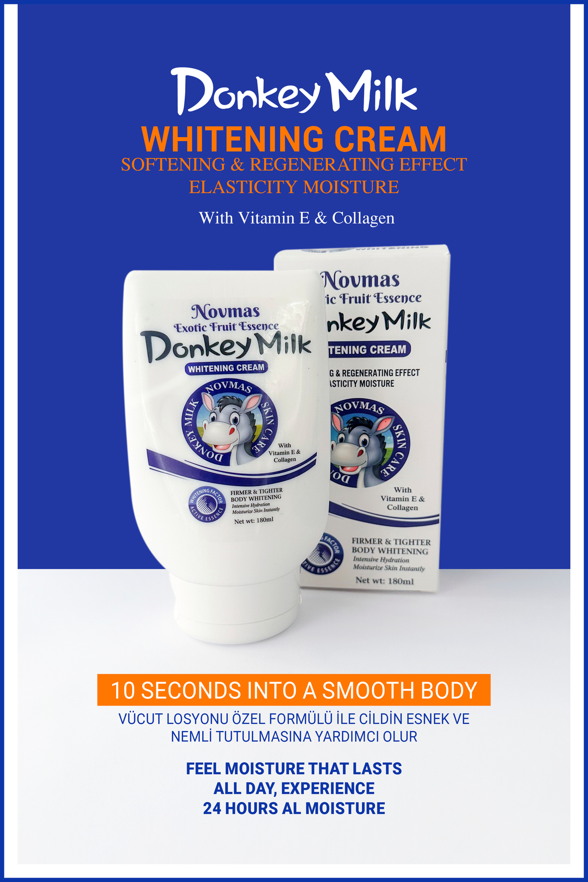 Nera Classy Donkey Milk Whitening Cream, 180ml Gerçek Eşek Sütü Beyazlatıcı Vücut Losyonu 24 Saat Etkili
