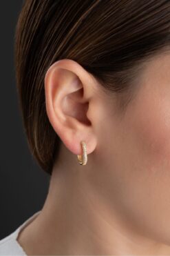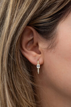 Nereze 925 Ayar Gümüş Bereketi Gold Kaplama Baget Taşlı U Model Küpe