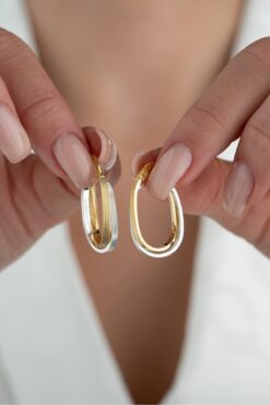 Glaren Asimetrik Mineli Altın Renk Kadın Küpe