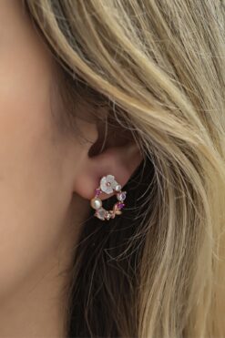 Pelin Aksesuar Renkli Kristal Çiçekli Küpe Kulak Aksesuarı