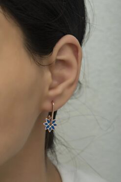 Nereze 925 Ayar Gümüş Bereketi Mavi Mineli Rüzgar Gülü Küpe