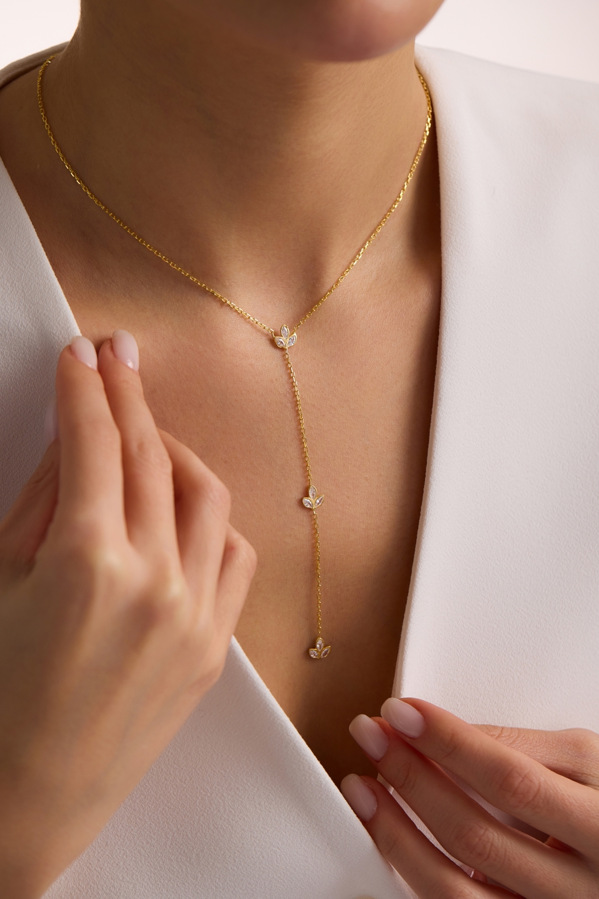 Nereze 925 Ayar Gümüş Gold Kaplama Y Model Lotus Çiçeği Kolye