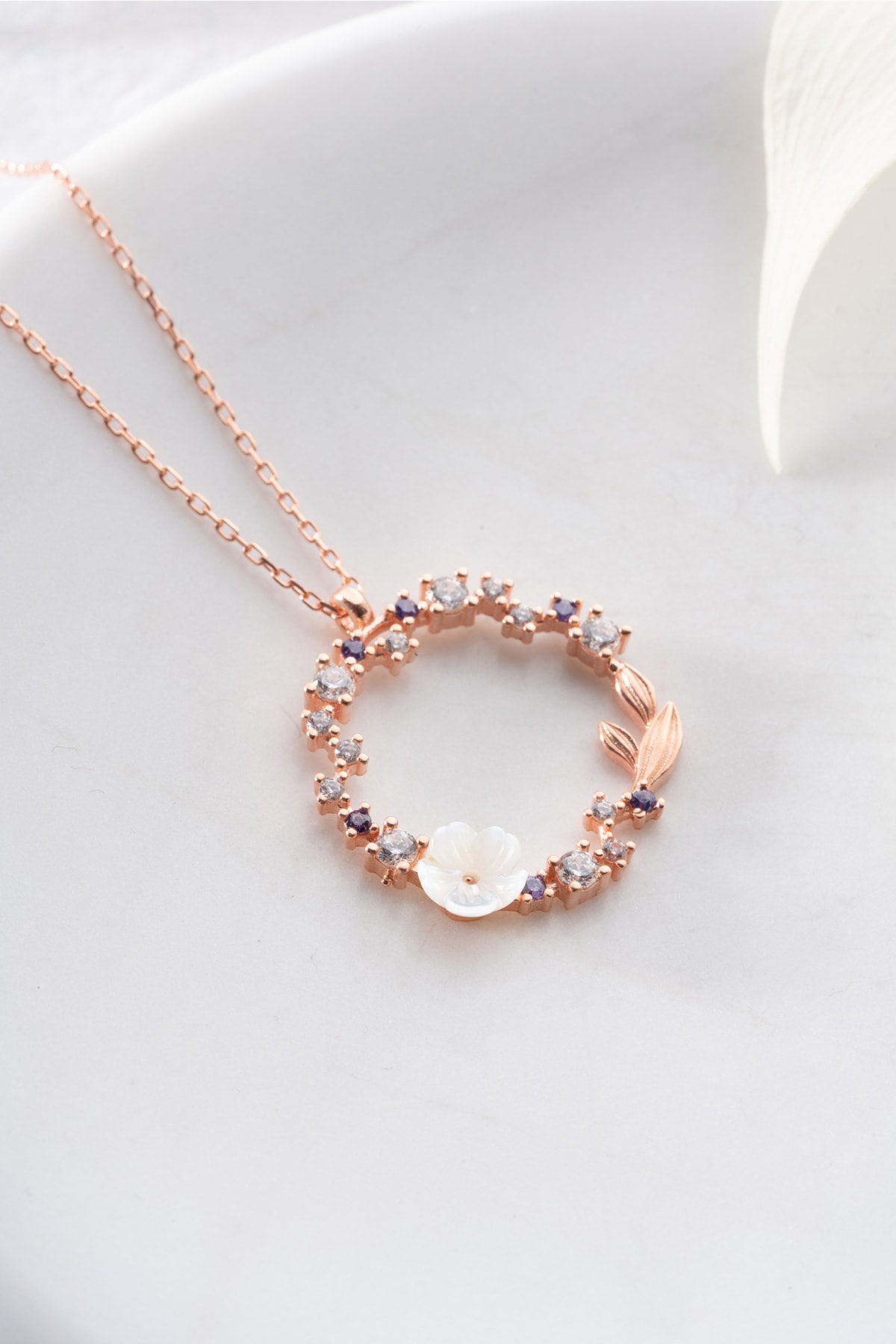 Nereze 925 Ayar Gümüş Manolya Çiçeği Işıltılı Daire Model Kolye