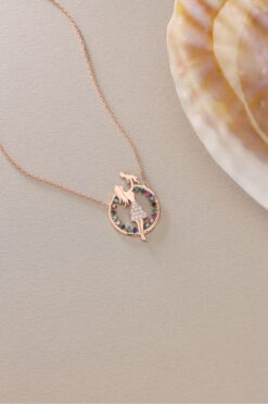 Nereze 925 Ayar Gümüş Rose Kaplama Mix Taşlı Anne Bebek Kolye