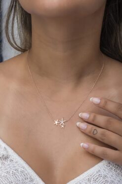 Nereze 925 Ayar Gümüş Rose Zirkon Taşlı 3 Yıldızlı Kolye