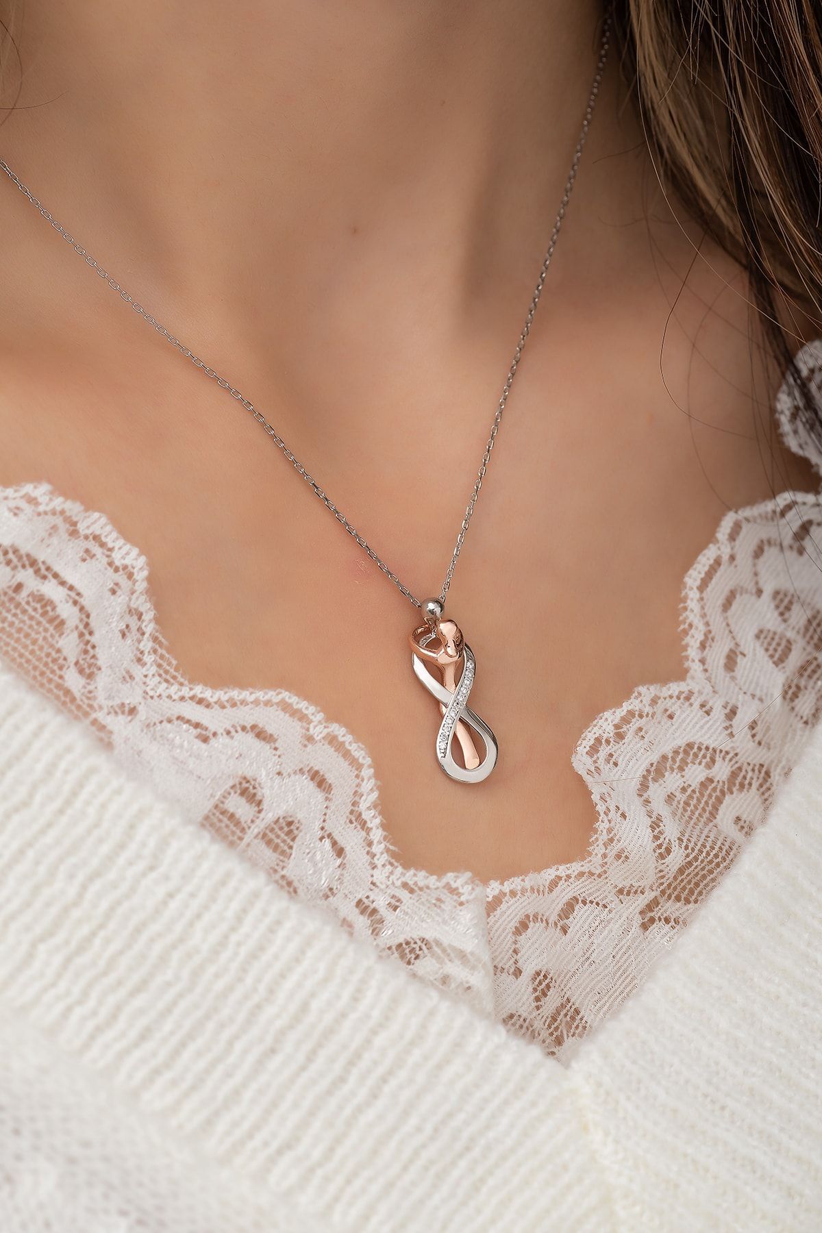 Nereze 925 Ayar Gümüş Sonsuzluk Sarılan Çift Kolye Kadın Gümüş Kolye