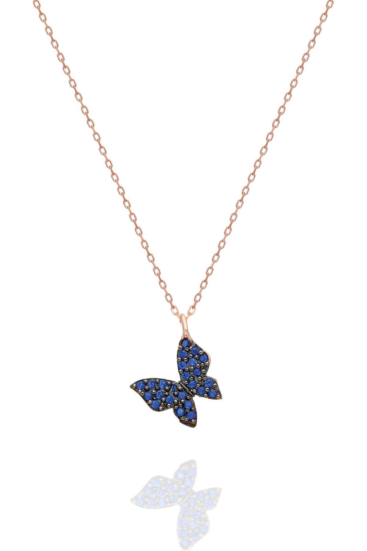 Nereze 925 Ayar Minik Mavi Kelebek Kolye Kadın Gümüş Kolye