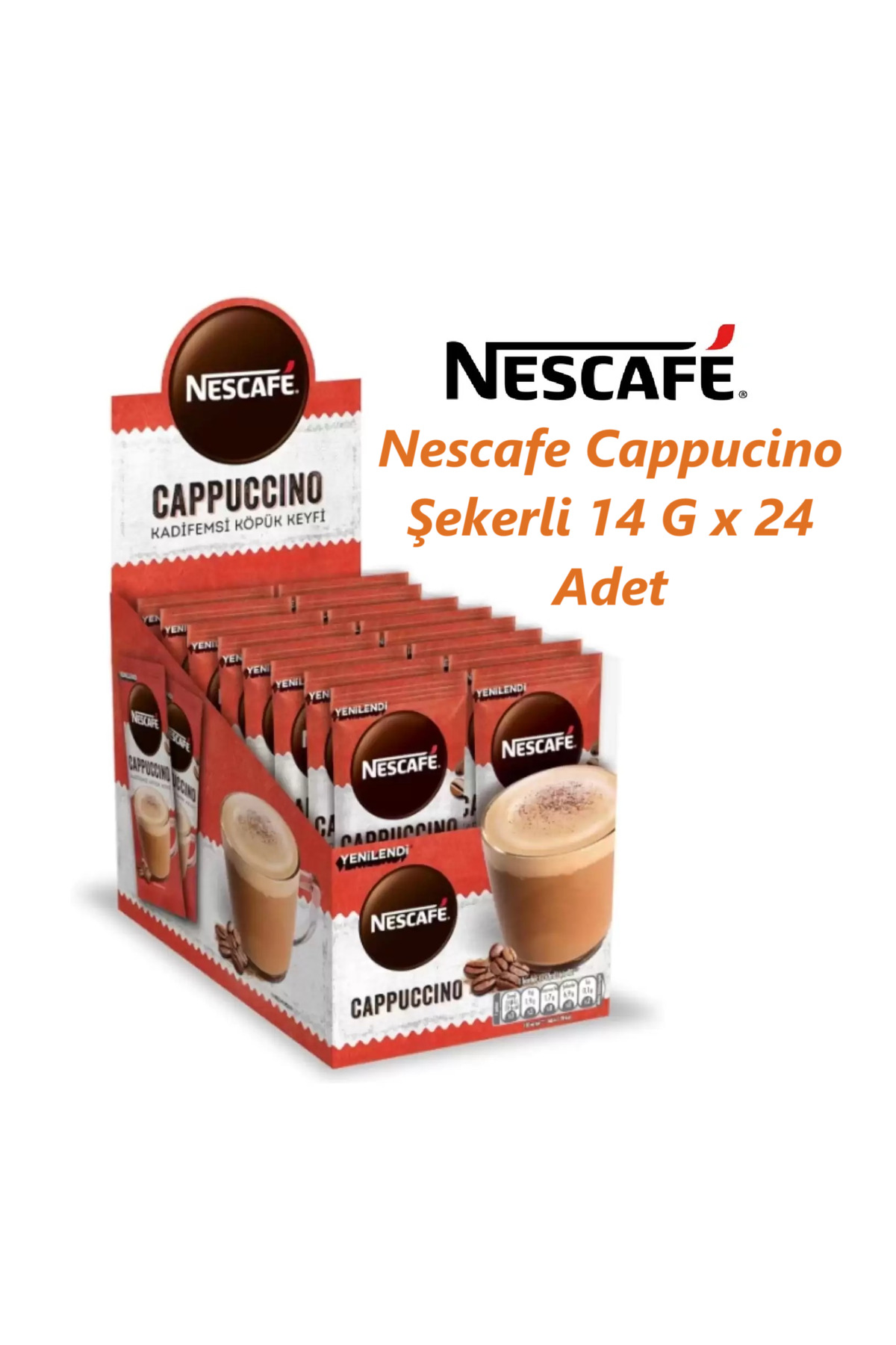 Nescafe Cappucino Şekerli 14G x 24 Adet ürünü ucuz fiyat, hızlı kargo imkanı ile hemen sitemizden sipariş verin.