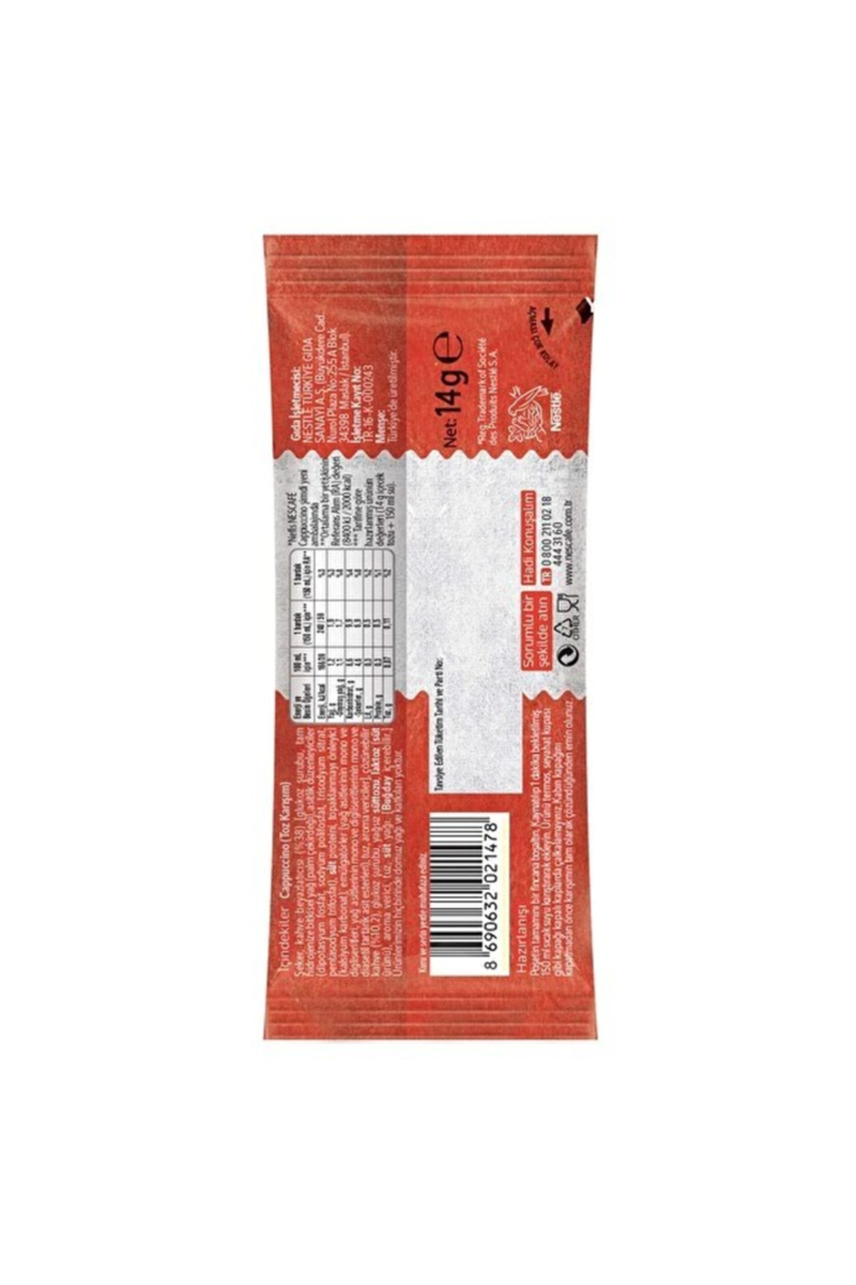 Nescafe Cappucino Şekerli 14G x 24 Adet