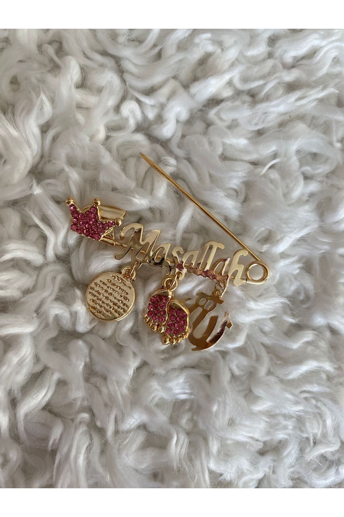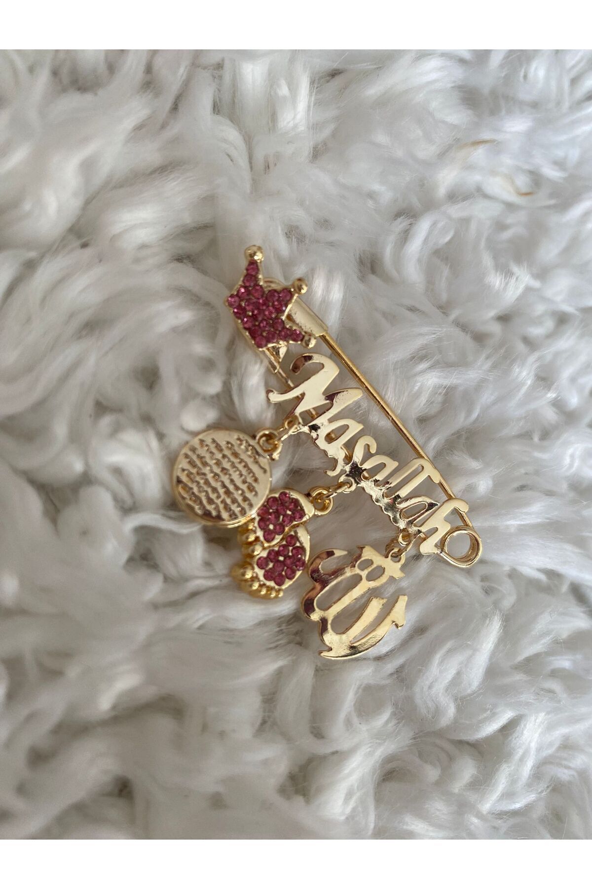 NeşeliAtölyem Maşallah Bebek Hediyelik Pembe Yazılı Yaka Iğnesi Nazarlık