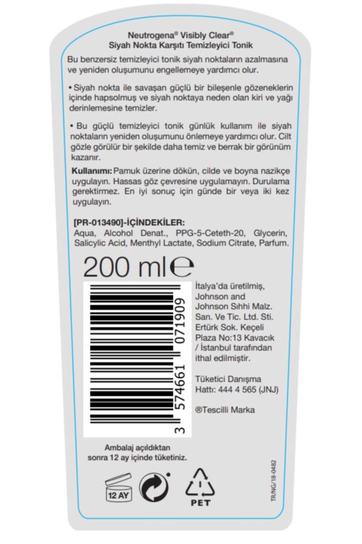 Neutrogena Visibly Clear Siyah Nokta Karşıtı Temizleyici Tonik 200 ml en ucuz fiyata kozmetikara.com sitemizden sipariş verebilirsiniz.