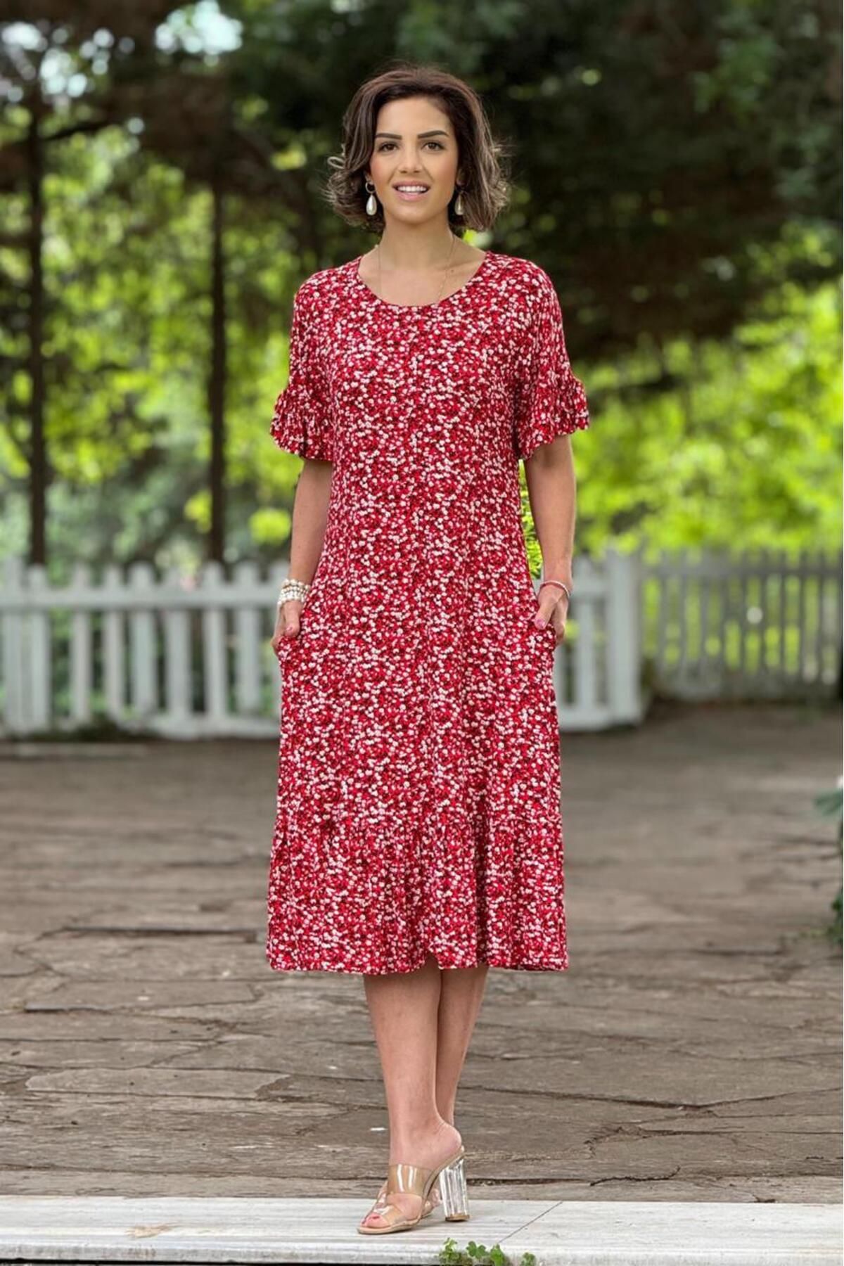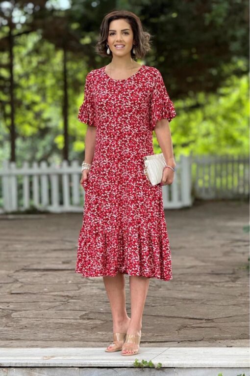Nevin Kaya Moda Kırmızı Papatya Desenli Etekleri Fırfırlı Yazlık Pamuklu Penye Elbise en ucuz fiyata kozmetikara.com sitemizden sipariş verebilirsiniz.