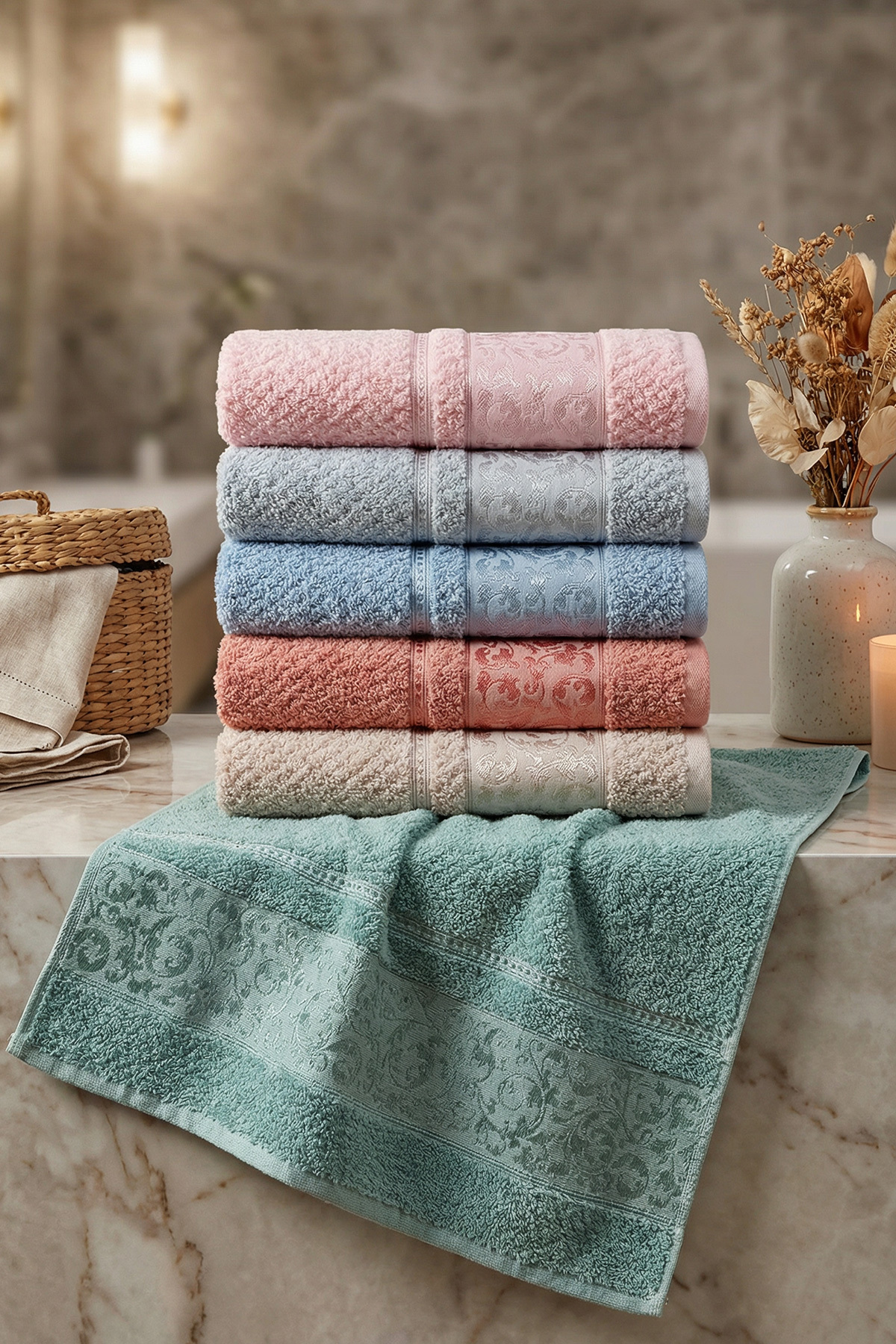 New Cotton Home Eyşan 6’lı%100 Doğal Pamuk El Yüz Baş Havlu Seti 50×85 cm – Yumuşak & Yüksek Su Emici