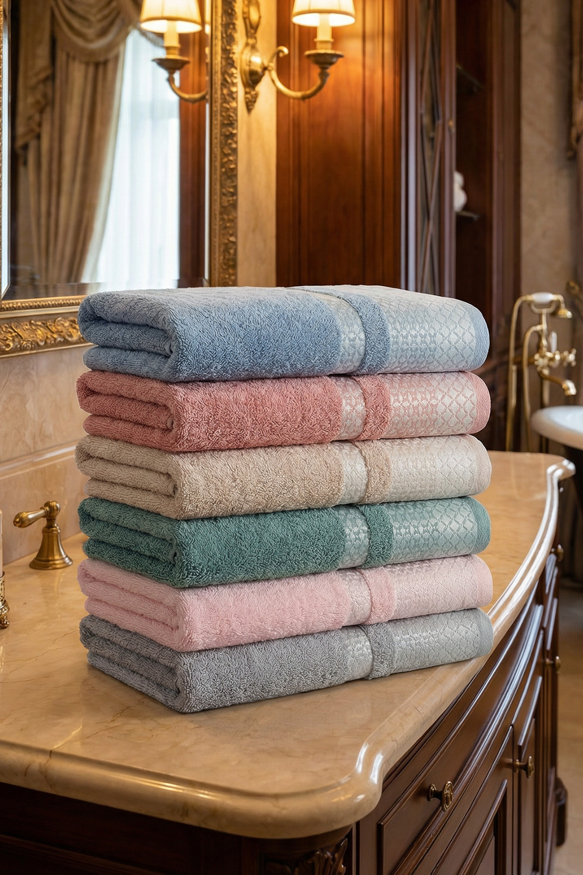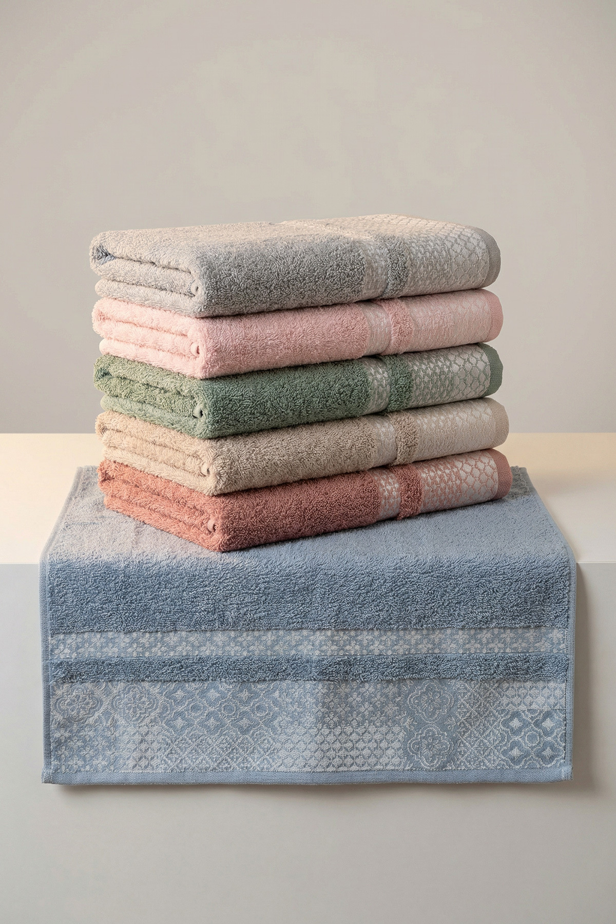 New Cotton Home Geometri Desen 6’lı %100 Doğal Pamuk El Yüz Baş Havlu Seti 50×85 cm – Yumuşak & Yüksek Su Emici