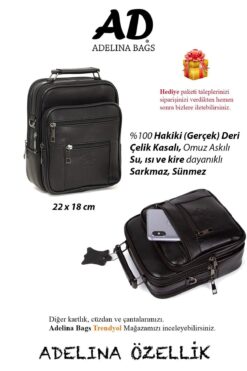 Erkek Siyah Hakiki Deri Çelik Kasalı El Ve Omuz Çanta. Çantamız Ürün ölçüleri: 21.5 x 17.5 cm’dir. %100 Hakiki Kuzu Derisinden üretilmiştir. Birinci sınıf metal aksesuar kullanılmıştır.