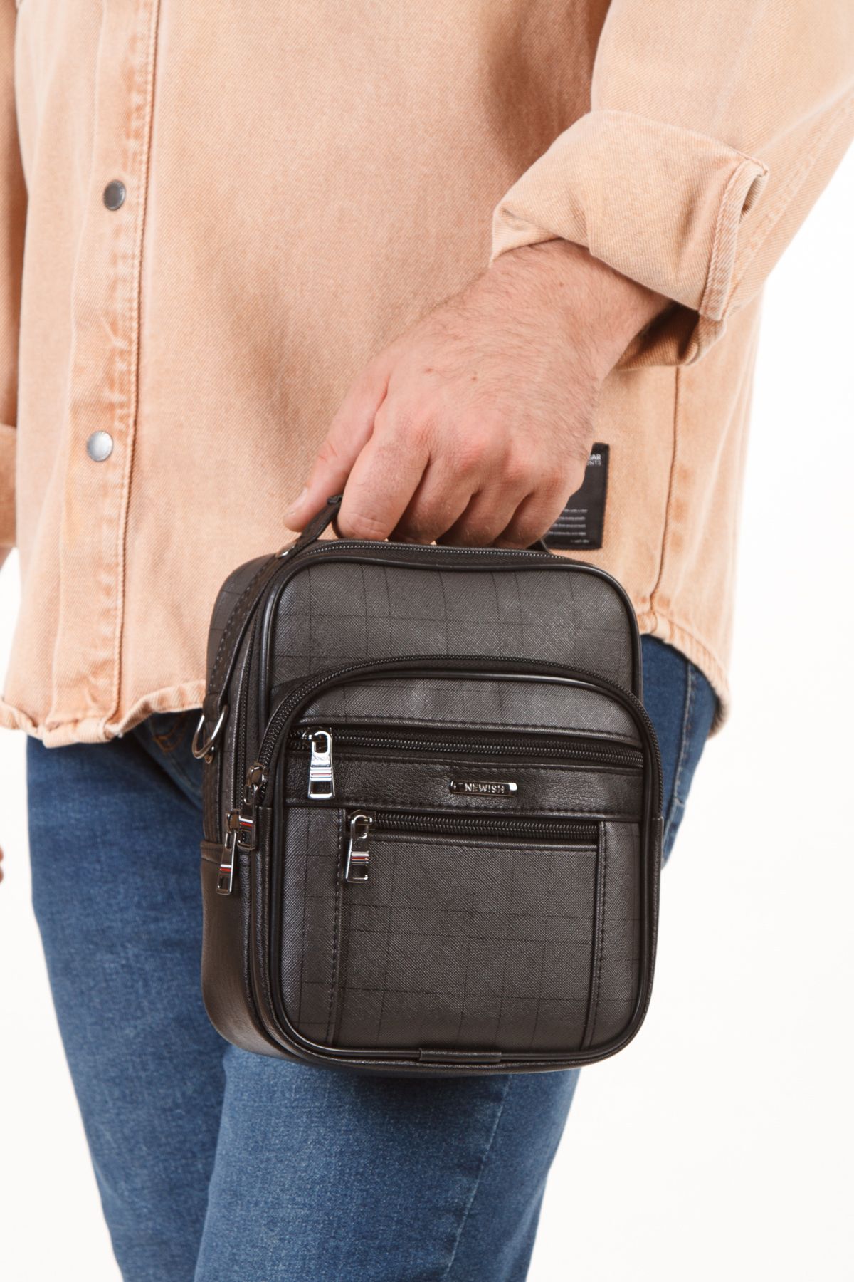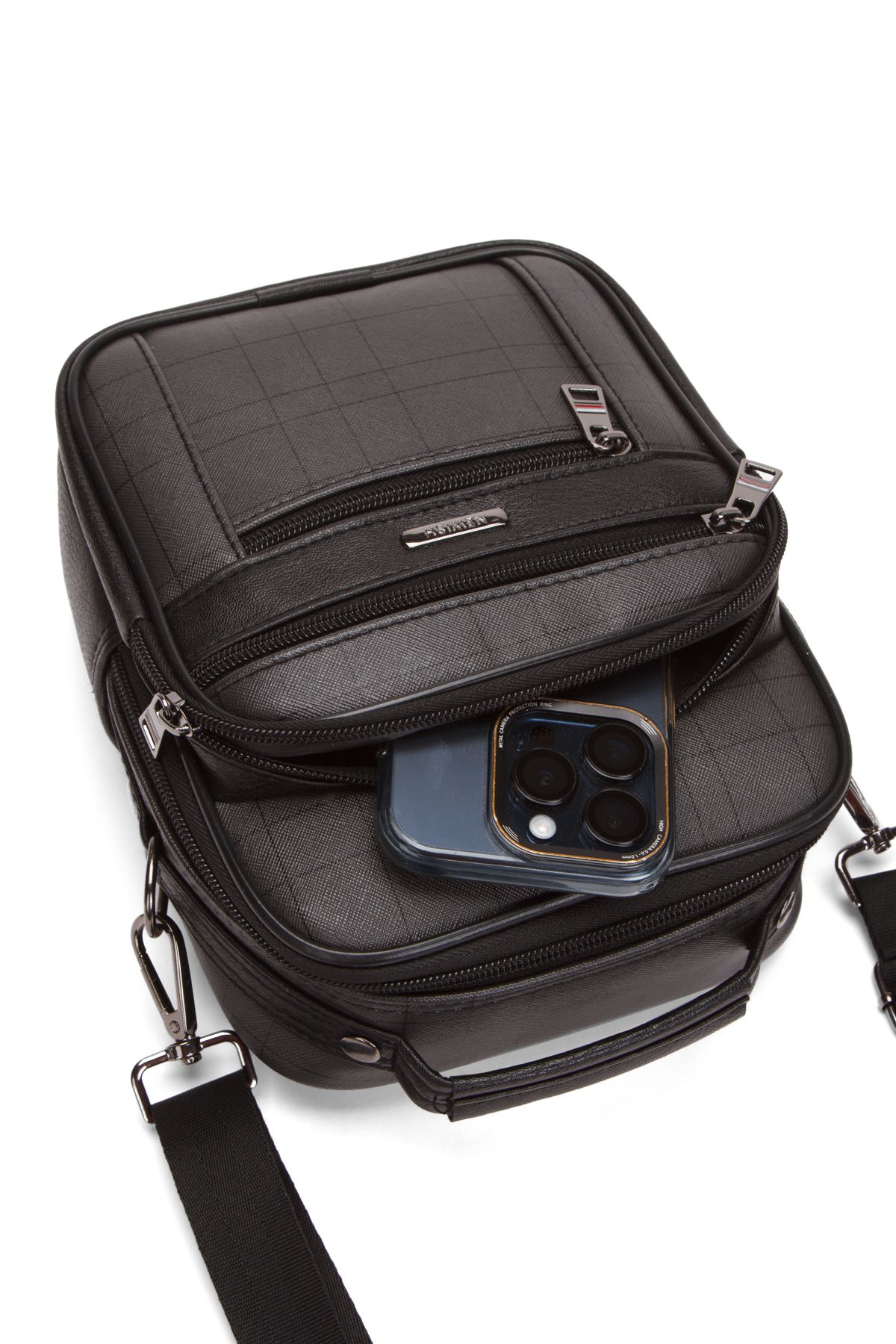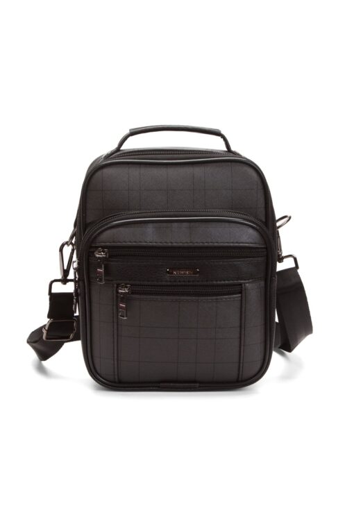 Newish Erkek Ekose Kumaş Çok Bölmeli El Ve Omuz Çantası
