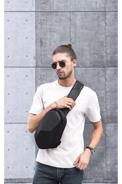 Newish Erkek Siyah Vegan Deri Çapraz Askılı Omuz Ve Bel Çantası