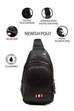 Newish Erkek Siyah Vegan Deri Kulaklık Çıkışlı Çapraz Omuz Çantası Bel Çantası Günlük Çanta ürünü ucuz fiyat, hızlı kargo imkanı ile hemen sitemizden sipariş verin.