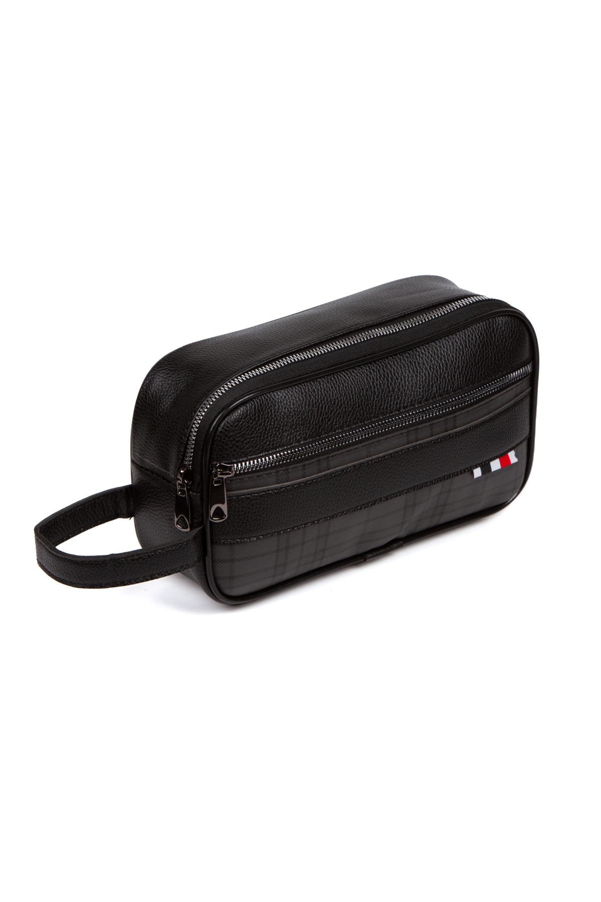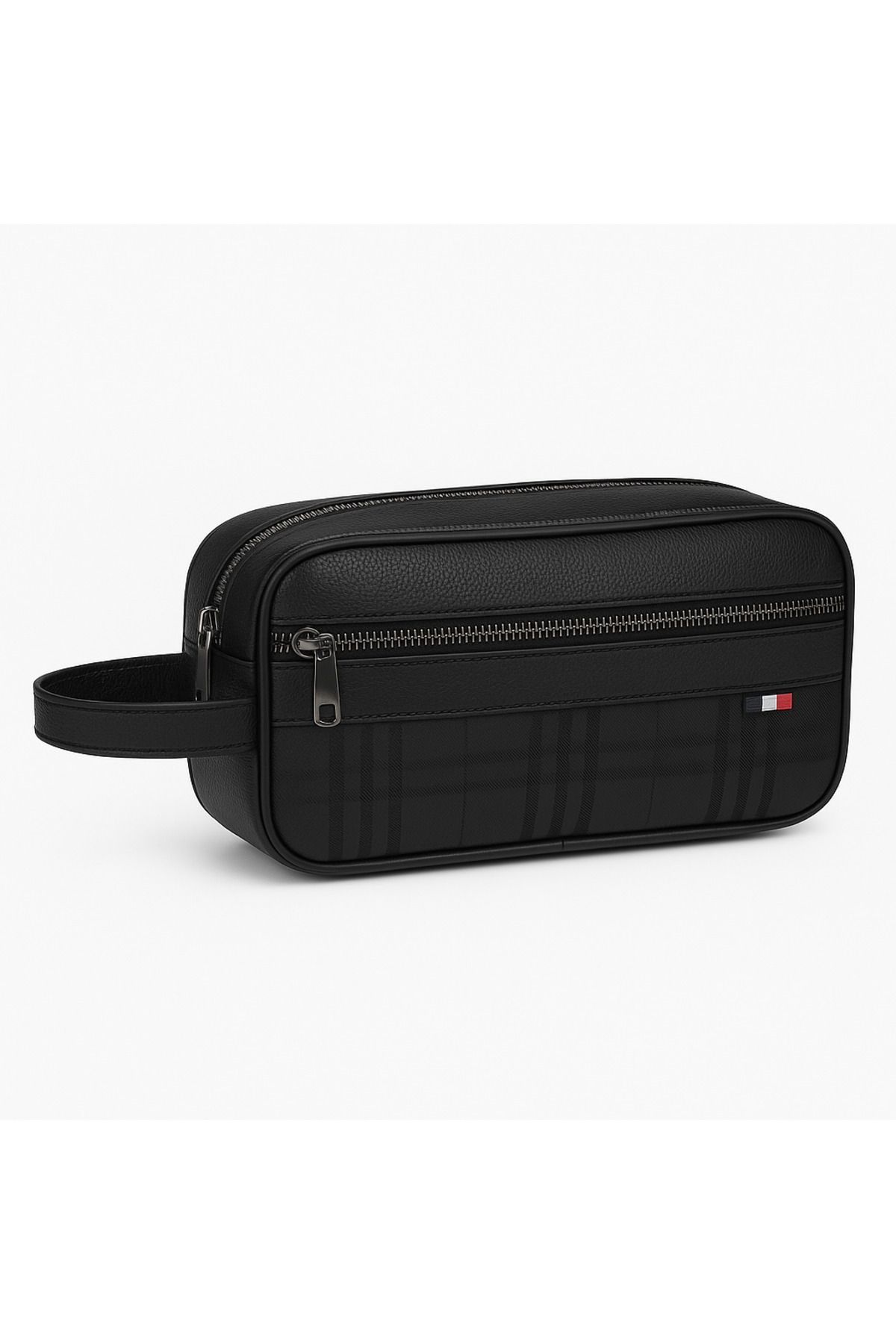 Newish Erkek Siyah Vegan Deri Suya Dayanıklı Elegan Portföy Stil El Çantası Traş Kozmetik Çanta