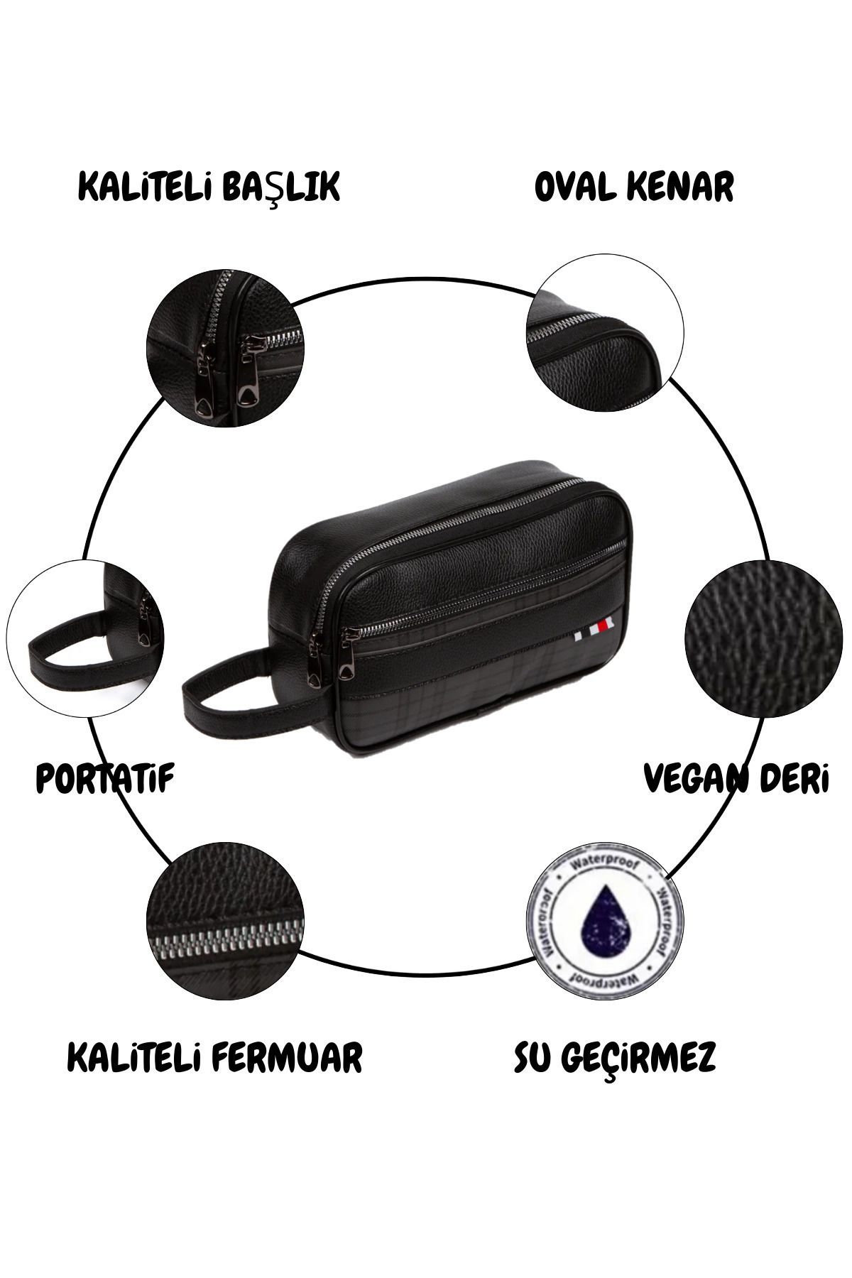 Günlük kullanımınız için estetik ve işlevsel olan Vegan Deri Su Geçirmez Erkek Traş Çantası Kozmetik El Çantası Siyah’ı sizlerle buluşturuyoruz. özel tasarlanan bu ürün, görünümüyle olduğu kadar özellikleriyle de vazgeçilmeniz olacak.