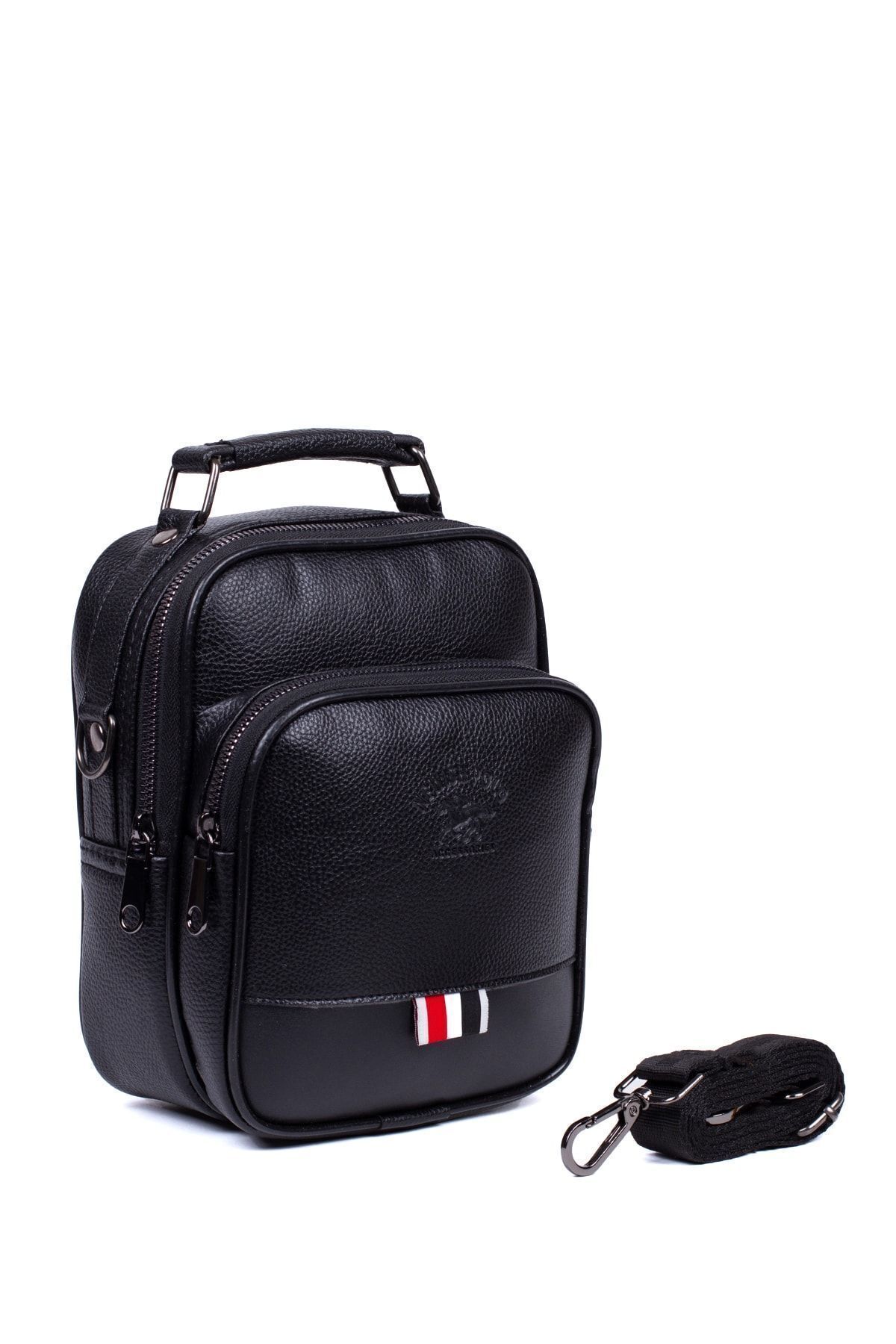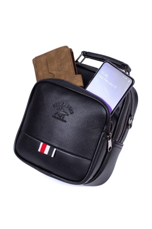 Erkek Vegan Deri El Ve Omuz Çantası, Çapraz Erkek Çanta, Telefon Bölmeli Siyah (Büyük Boy)