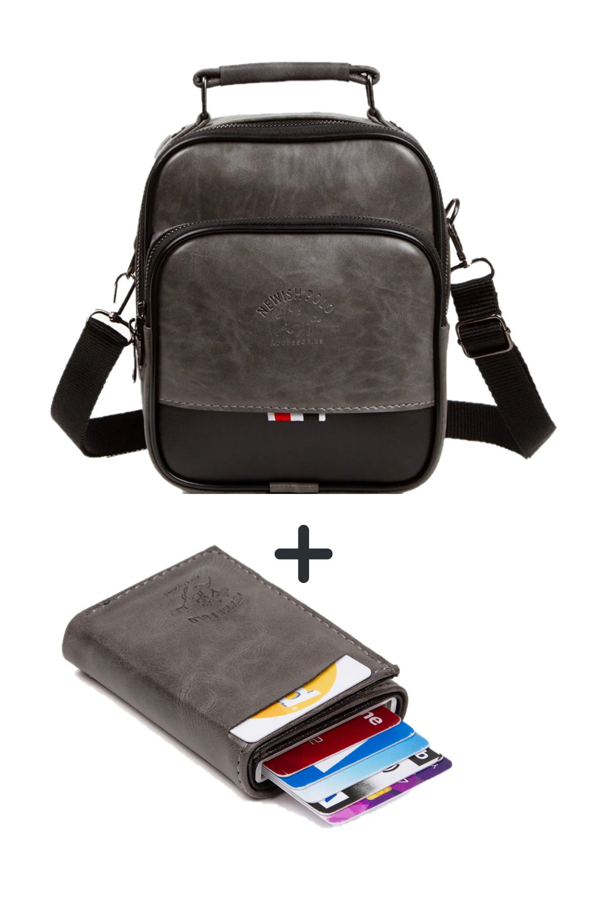 Newish Erkek Vegan Deri El Ve Omuz Çantası Vegan Deri Mekanizmalı Kartlık Cüzdan Rfıd