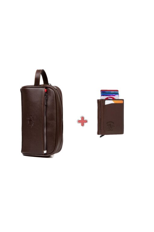 Newish Erkek Vegan Deri Traş Ve El Çantası & Alüminyum Mekanizmalı Kartlık Cüzdan