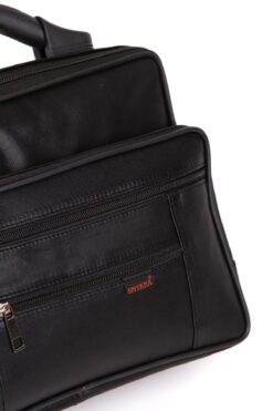 Newish Hakiki Kuzu Derisi Erkek El Omuz Çantası Siyah Büyük Boy (27X22CM)