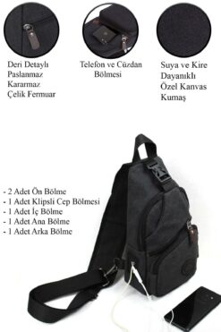 Telefonlarınız için özel iç bölüm Ergonomik omuz askısı Kulaklık ve Usb Çıkışı mevcuttur.
