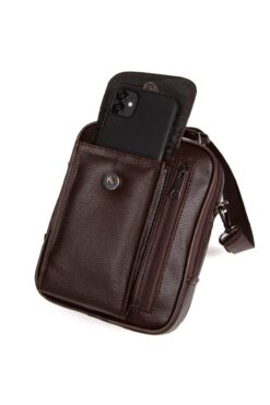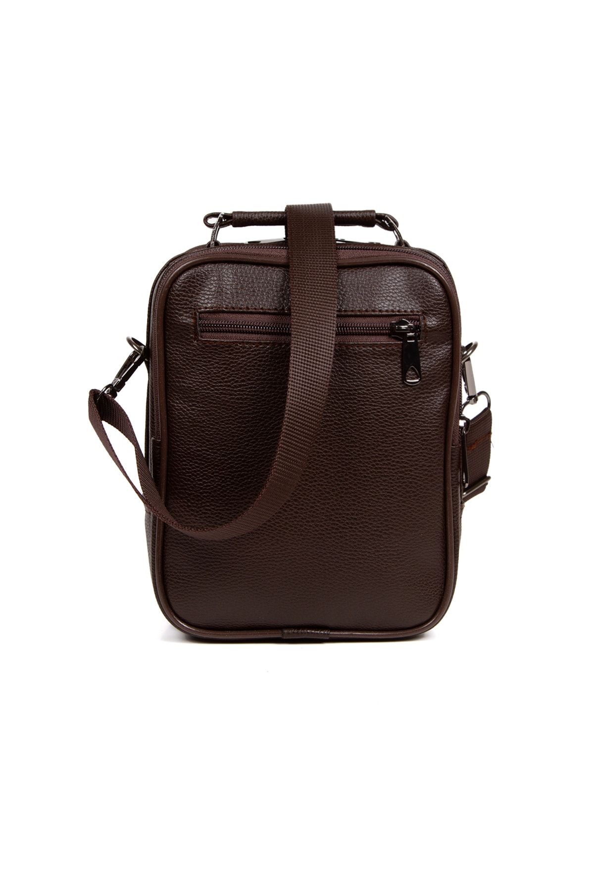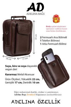 Erkek Koyu Kahve Deri Çelik Kasalı Telefon Bölmeli El Ve Omuz Çantası ve Mekanizmalı Kartlık Cüzdan. Ürün ölçüleri, Yükseklik 22 cm, Genişlik 17 cm, Derinlik 10 cm dir. Çantamızda 1 adet Telefon bölmesi, 2 ana fermuarlı bölme, 1 arka fermuarlı bölmesi vardır. Suya, kire ve ısınmalara karşı dayanıklıdır. TSE standartlarına uygun olarak üretilmiştir. Birinci sınıf vegan deriden üretilmiştir. Günlük kullanıma uygun ve pratiktir. Mıknatıslı telefon bölmesi vardır. Güvenli açma kapamaya sahiptir. Omuz askısı ayarlanabilir uzunlukta ergonomiktir. Uzun yıllar yıpranmadan, sarkma, sünme vs. gibi sorunlar olmadan kullanabileceğiniz bir üründür.