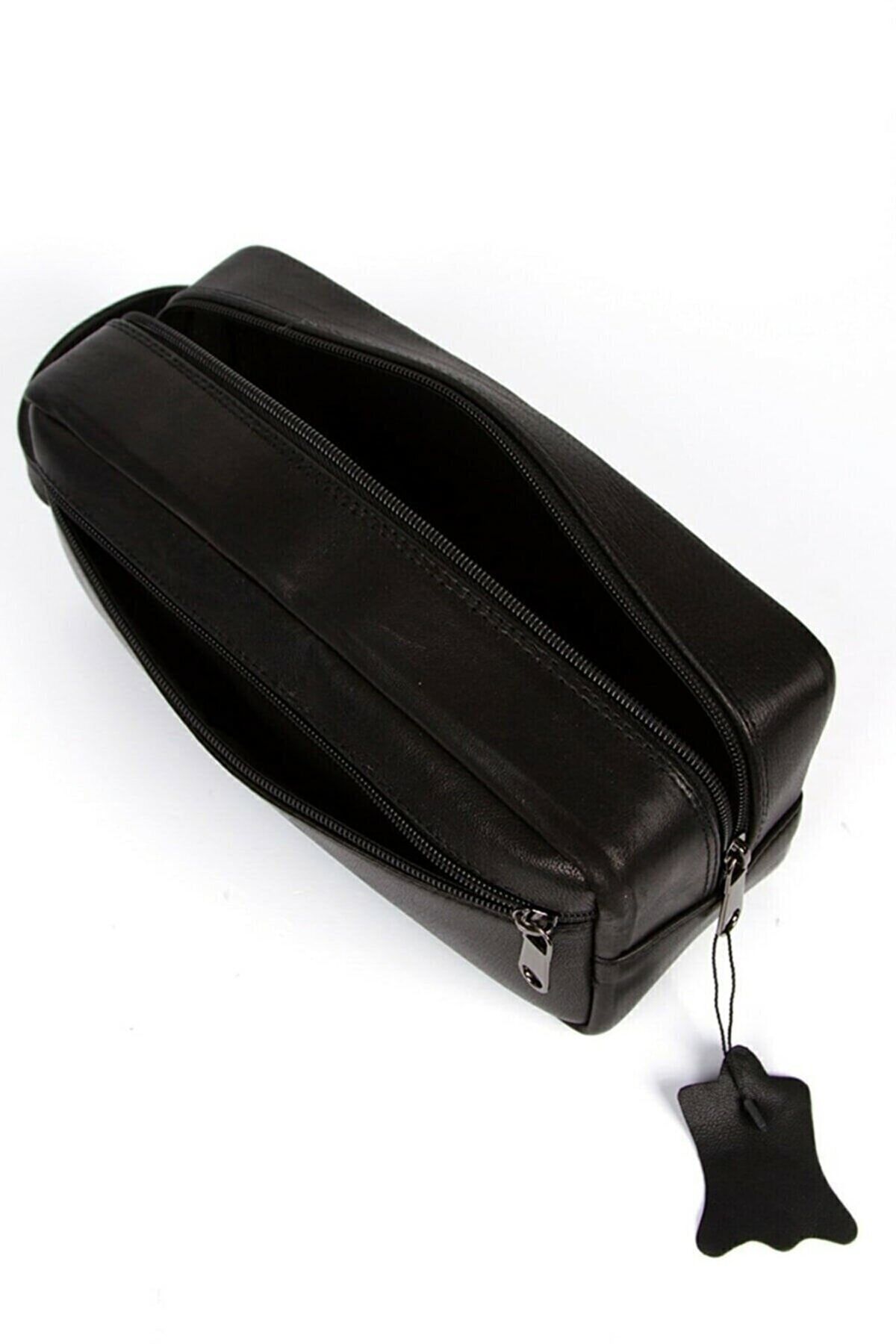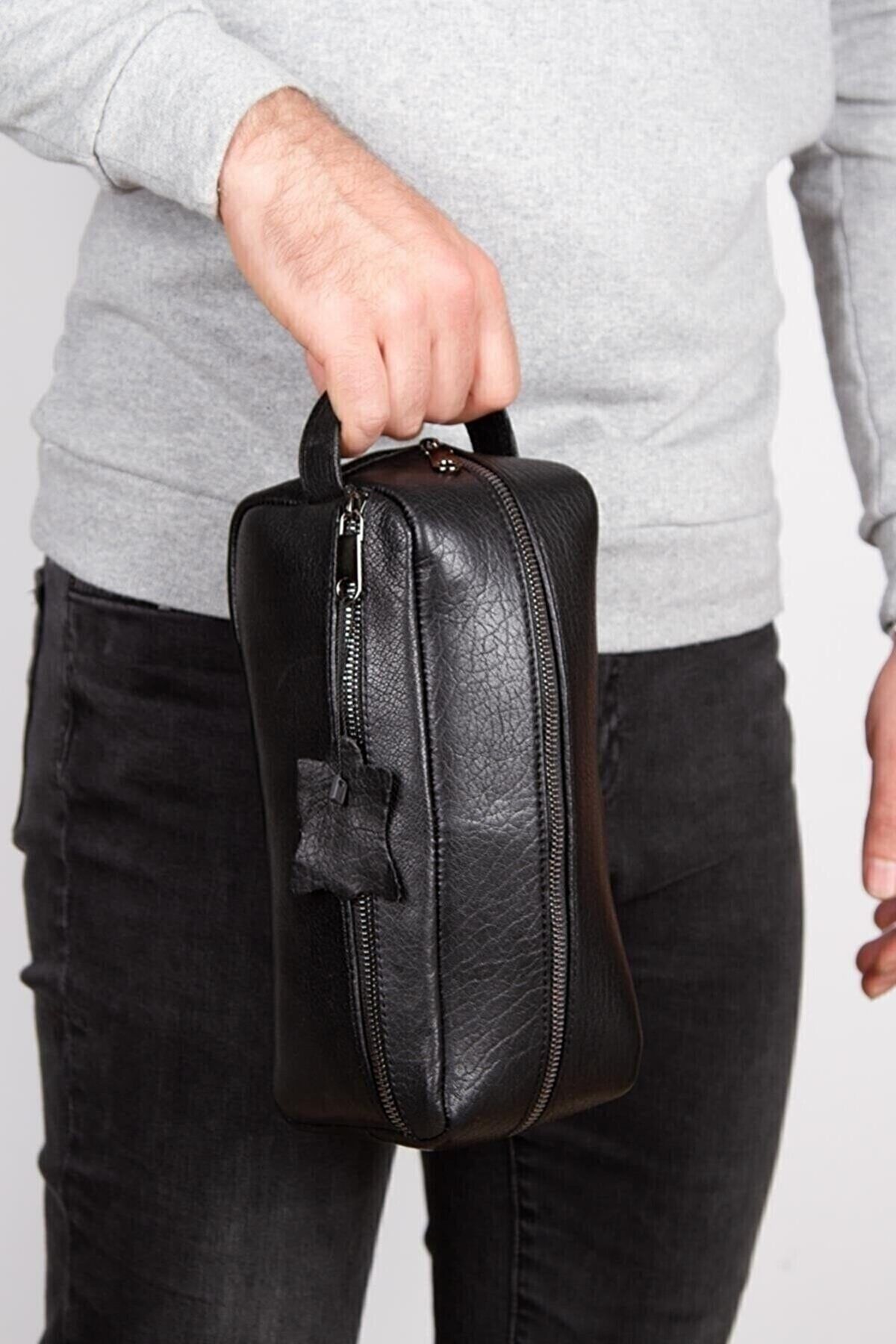 NEWISH POLO ACCESSORIES Erkek Siyah Deri Kozmetik Portföy Çantası Şık Tıraş Seyahat Çantası Günlük Bakım Çantası El Çanta