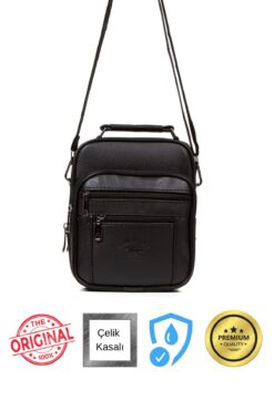 Erkek Küçük Boy Siyah Deri Çelik Kasalı El ve Omuz Çantası. Ürün ölçüleri: Yükseklik 18 cm Genişlik 15cm, Derinlik 10 cm dir. Kasalı Erkek El ve Omuz Çantası. Birinci sınıf vegan deriden üretilmiştir. Toplamda 6 adet fermuarlı bölmesi vardır. Çelik kasalı olması sebebiyle yıpranma, sünme, sarkma gibi durum söz konusu değildir. Uzun yıllar kullanabileceğiniz, eşyalarınızı güvenle taşıyabileceğiniz bir çantadır. Ayarlanabilir omuz askısı vardır. İsteğe bağlı çıkartılıp, takılabilir. Askı boy uzunluğu ayarlanabilir. Ergonomik tasarımı sayesinde kolay ve pratik bir çantadır. Günlük Kullanıma uygundur. Çelik kasalıdır. TSE standartlarına uygun olarak üretilmiştir. Birinci kalite metal aksesuar kullanılmıştır. Isıya, suya ve kire karşı dayanıklıdır. Metal aksesuarları kararma yapmaz. Fotoğraflar stüdyolarımızda çekilmiştir…