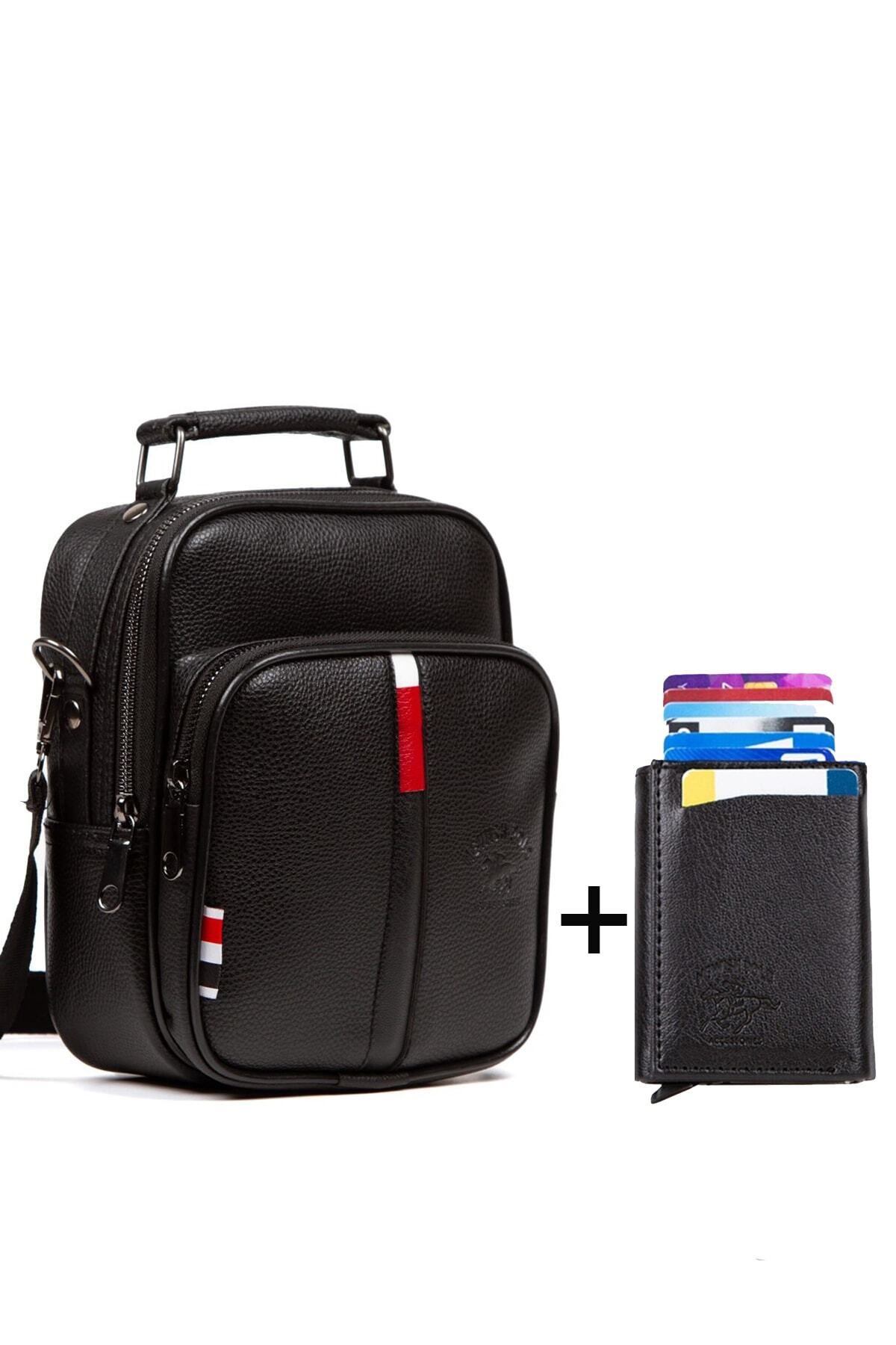 Newish Polo Adelina Siyah Deri El Ve Omuz Çanta Ve Mekanizmalı Kartlık Set Adl05926