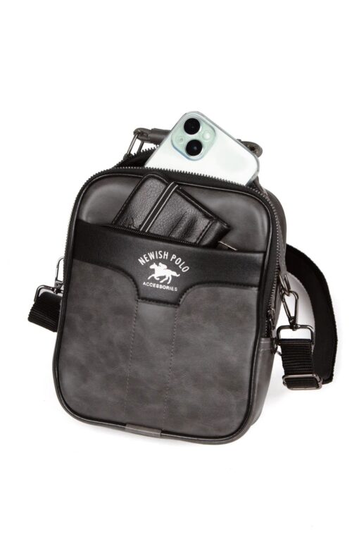 Newish Polo Erkek Gri Deri Telefon Bölmeli Ayarlanabilir Çapraz Askılı Günlük El Ve Omuz Çantası