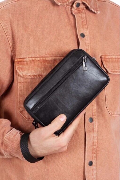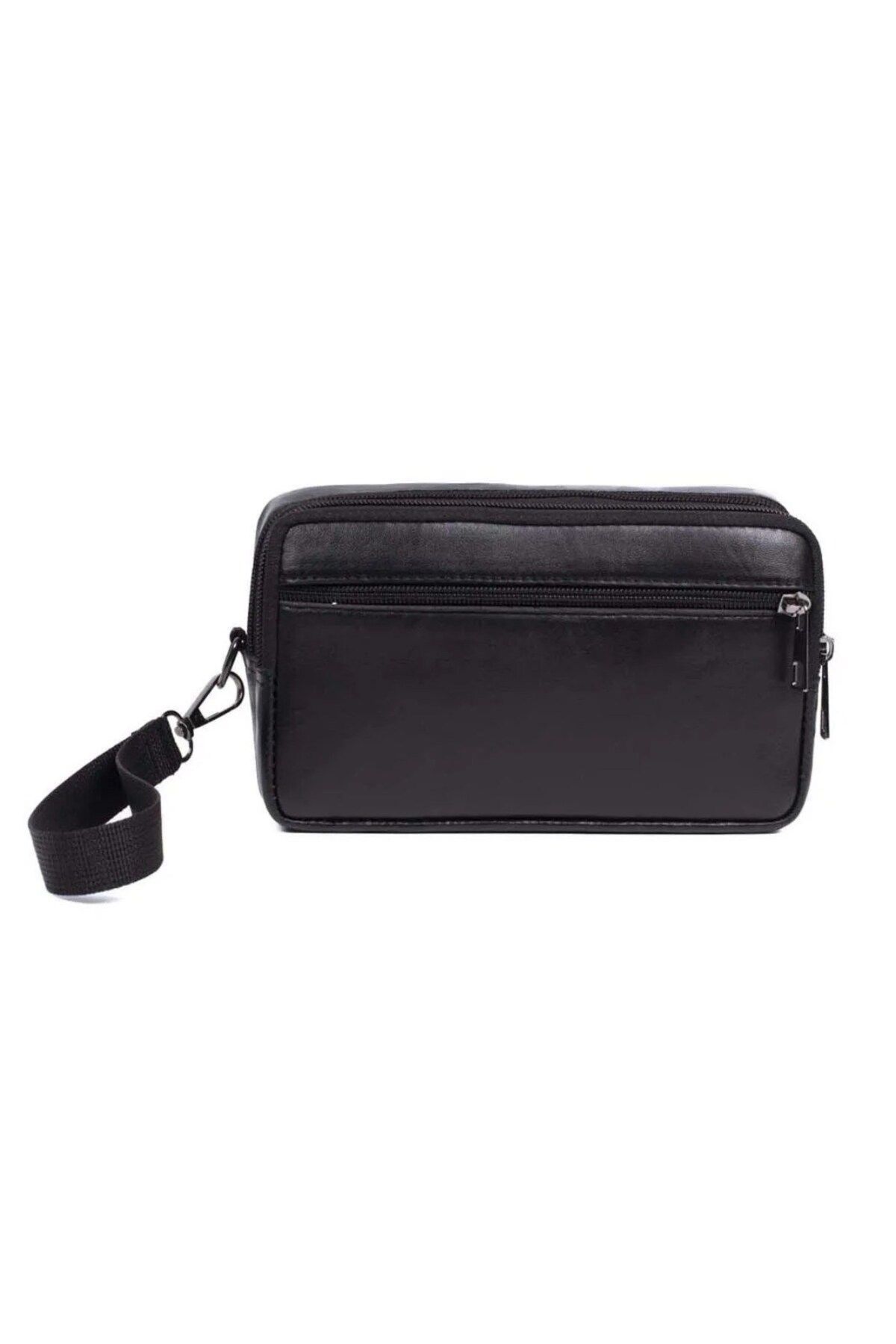 Newish Polo Erkek Hakiki Deri Günlük Portföy El ve Bel Çantası – Siyah