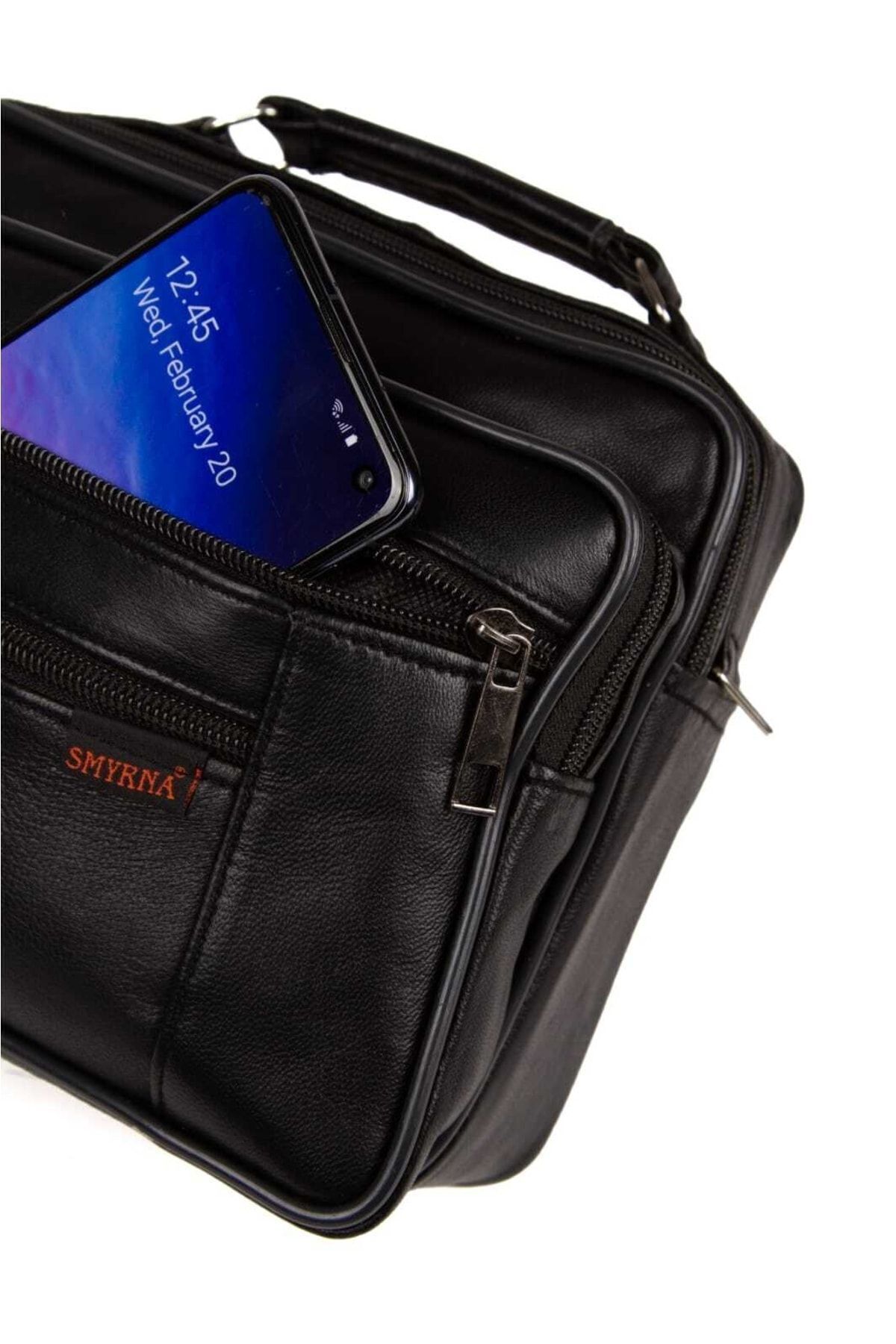 Newish Polo Hakiki Deri Erkek El Ve Omuz Çantası Siyah