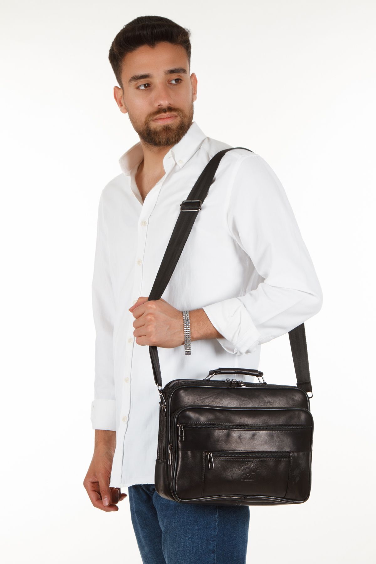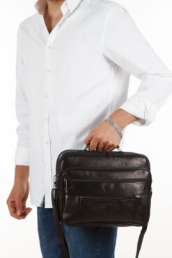 Newish Polo Kasalı Battal Boy Erkek Hakiki Deri El Ve Omuz Askılı Çanta Siyah