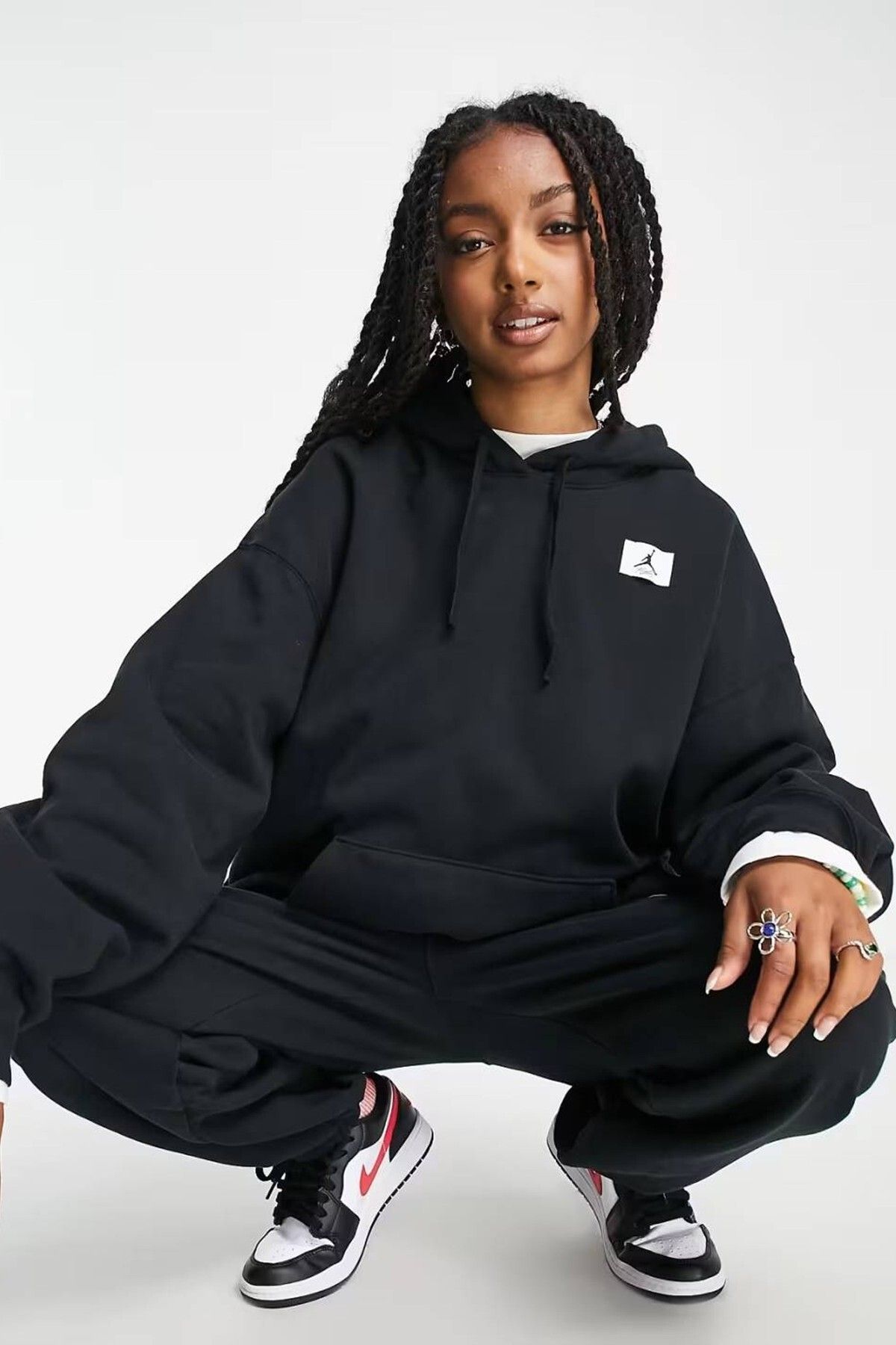 Nike Jordan Flight Fleece Oversize Hoodie Kadın Oversize Bol Kesim Kapüşonlu Sweatshirt Siyah ürünü ucuz fiyat, hızlı kargo ve kredi kartına 12 ay taksit imkanı ile hemen sitemizden sipariş verin.