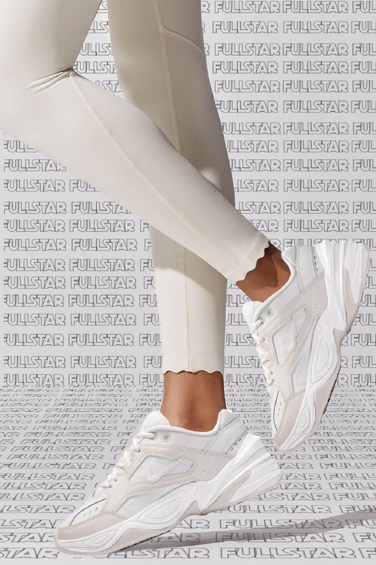 Nike M2k Tekno Leather Unisex Sneaker Hakiki Deri Spor Ayakkabı Kırık Beyaz Yükseklik 4cm