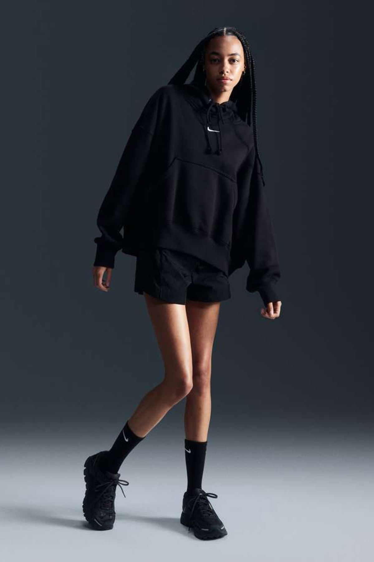 Nike Siyah – Gri – Gümüş Kadın Yuvarlak Yaka Regular Fit Sweatshirt DQ5858-010 W NSW PHNX FLC OOS PO