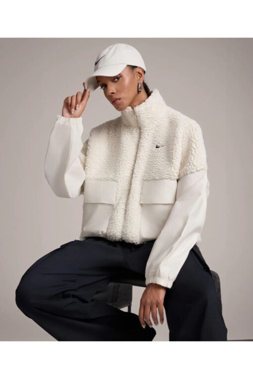 Nike Sportswear Essential Cozy Oversized Faux Fur and Ripstop Fabric Full-Zip Krem Kadın Peluş Mont Fiyatları, Özellikleri ve Yorumları