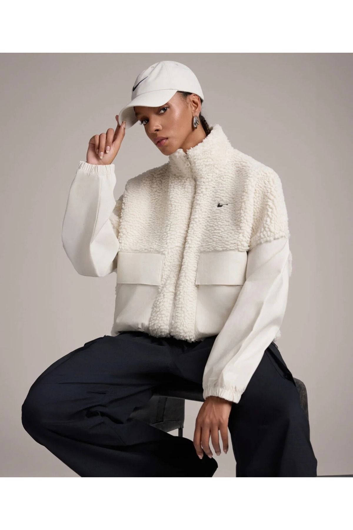 Nike Sportswear Essential Cozy Oversized Faux Fur and Ripstop Fabric Full-Zip Krem Kadın Peluş Mont en ucuz fiyata kozmetikara.com sitemizden sipariş verebilirsiniz.