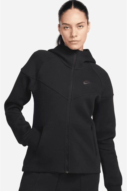Nike Tech Fleece Windrunner Full-Zip Hoodie Siyah Tam Fermuar Kapüşonlu Kadın Sweatshrit