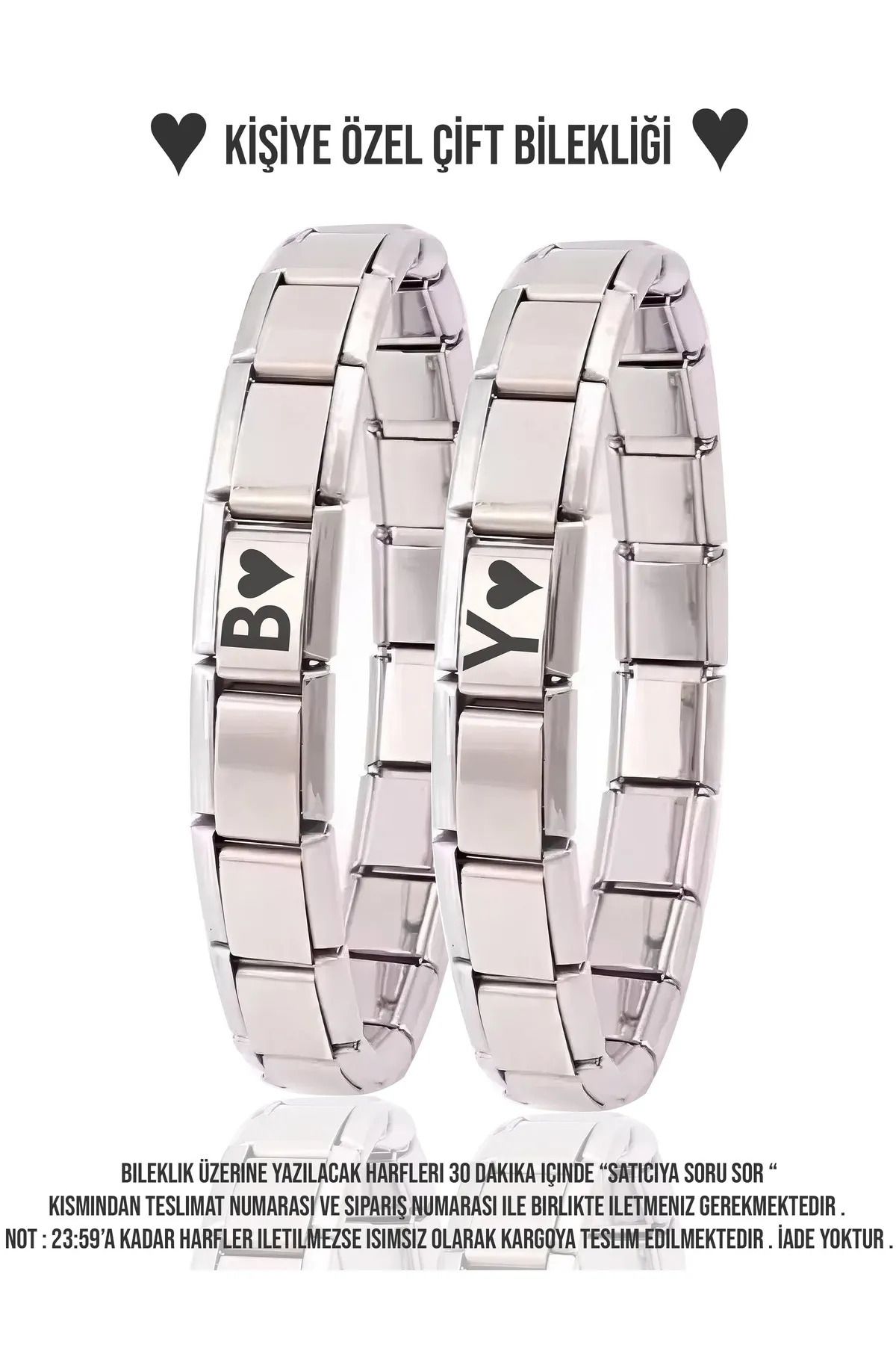 nokt Çiftlere Özel Harf Yazılı İtalyan Charm Çelik Bileklik Sevgiliye Hediye- Çift Bilekliği (2 ADET)