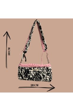 nora El Örgüsü Siyah Beyaz Penye İp Çanta