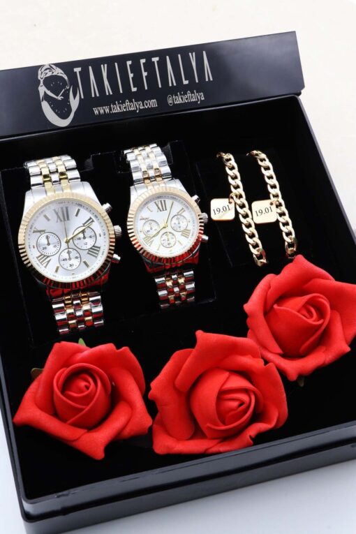 Northwatch Kırmızı Güllü Kutuda Gold Çift Kol Saati, Künye Harfli Bileklik Sevgili Kombini Fiyatları, Özellikleri ve Yorumları